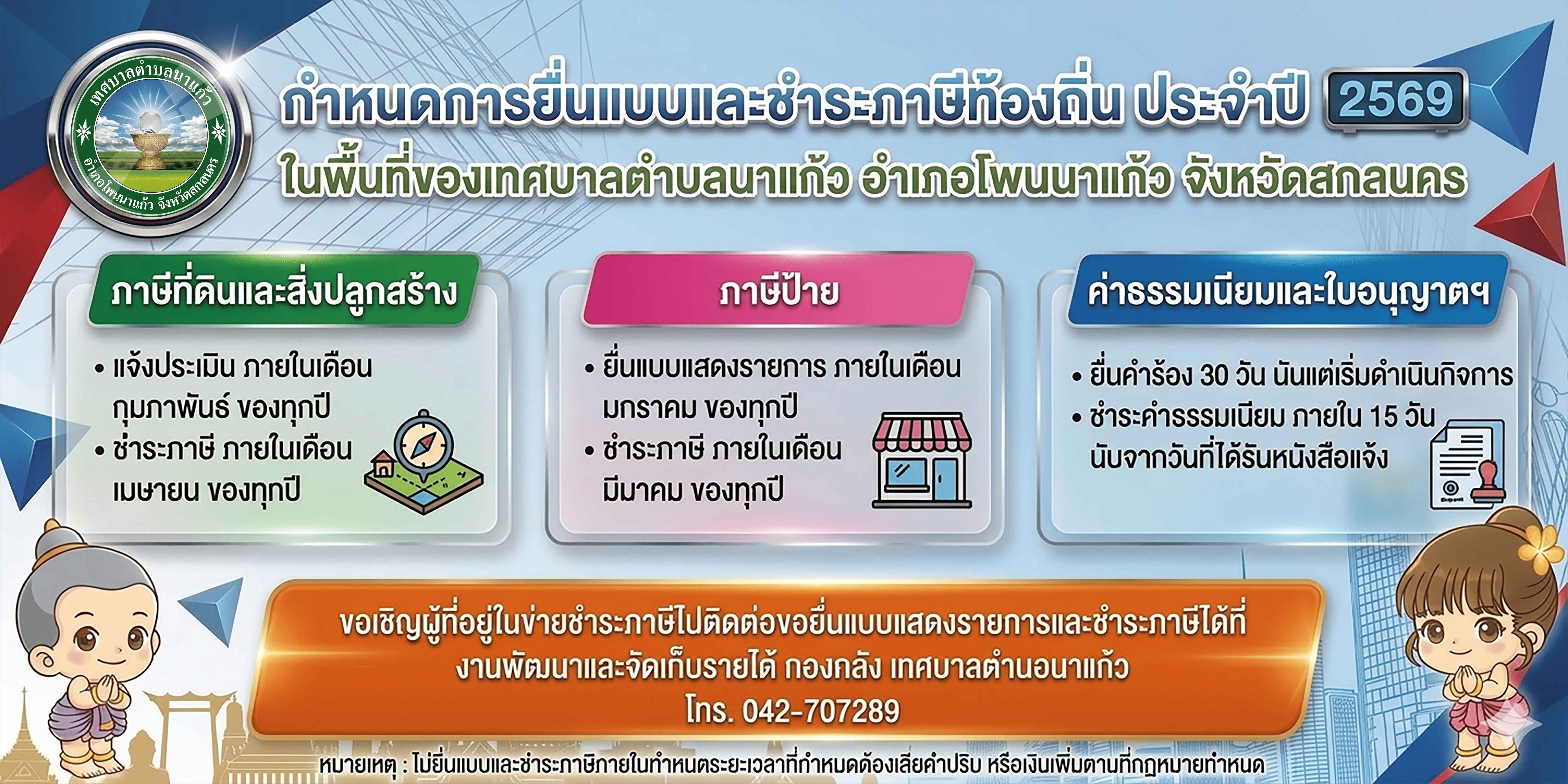 กำหนดการยื่นแบบและชำระภาษีท้องถิ่น ประจำปี 2569